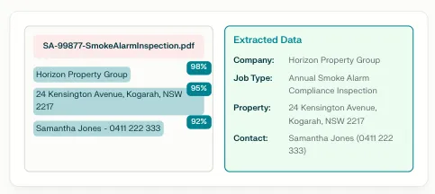 If ServiceM8 integration is configured, jobs are created automatically with all extracted data properly mapped to the correct fields.